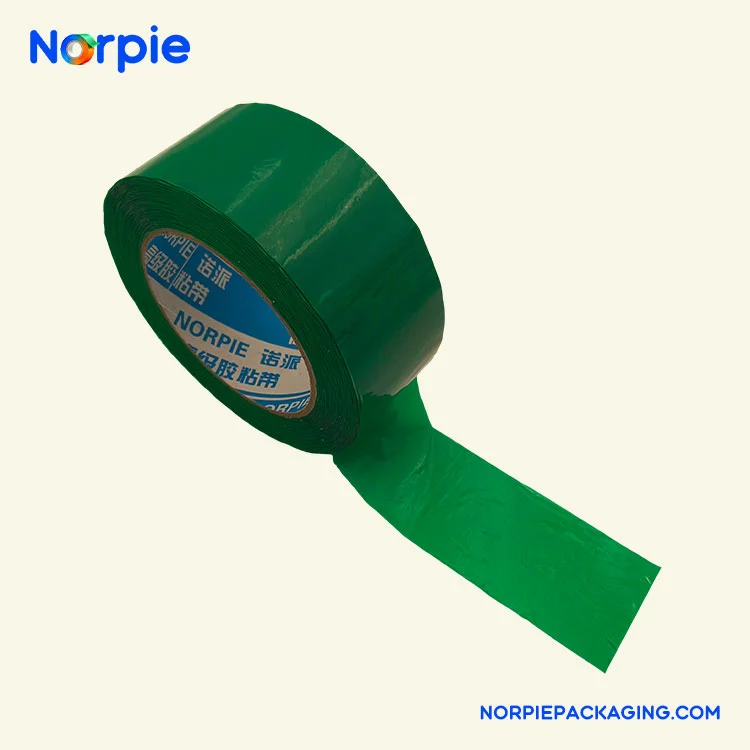 Qingdao Norpie Packaging Co., Ltd. produceert hoogwaardige gekleurde verpakkingstapes met premium BOPP-film als basismateriaal. Deze tapes zijn gecoat met een milieuvriendelijke, drukgevoelige acrylkleefstof op waterbasis door middel van precisiekleurtechnologie. De tapes zijn verkrijgbaar in 12 standaardkleuren, waaronder rood, geel, blauw en groen, en hebben een dikte van 0,048 mm, een initiële kleefkracht van minimaal 13# stalen kogel en een hechting die meer dan 20 uur aanhoudt. De levendige en uniforme kleuren zijn veilig voor het milieu en niet giftig, met een operationeel temperatuurbereik van -10°C tot 60°C.